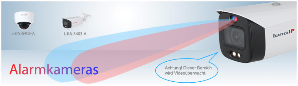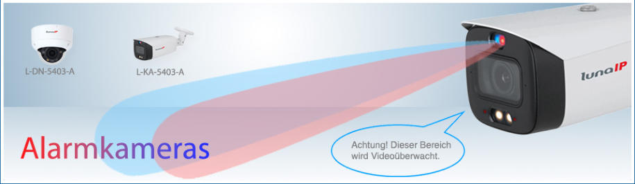 Die L-DN-5403-A & L-KA-5403-A sind IP-Kameras mit smarter Beleuchtung. Betreten Personen den Erkennungsbereich, kann die Kamera automatisch von IR-Licht auf Weisslicht